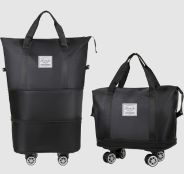 【荷物が増えても安心】折りたたみ式で容量が変えられるブラックのキャリーオンバッグ - 2泊3日〜長期旅行まで