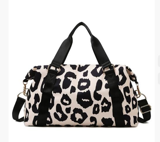 # 【スタイリッシュな旅のお供】ヒョウ柄 ボストンバッグ 大容量 トラベルバッグ 2WAY ジムバッグ|ホワイト