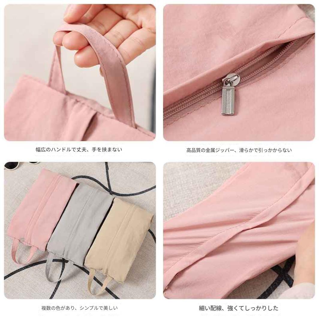 旅行用下着・靴下・衣類を仕分けできる、手提げ付きの防水ポータブル収納ポーチ ベージュ