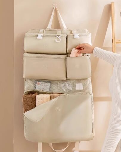 新登場の【吊るせるトラベルポーチ】が、あなたの旅行をより快適に支援します!収納ケースがそのままクローゼットに変わるため、衣類や小物の整理が簡単にできるのがポイントです。この収納ポーチは、実際の旅行シーンでその便利さを実感できるアイテムです!