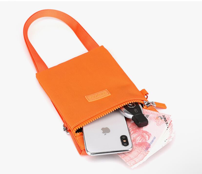 【ユニセックス】斜め掛けできるミニショルダーバッグ。スマホ・財布が入る軽量サコッシュ * カジュアルコーデにぴったり! シンプルデザインの軽量ミニサコッシュ ビタミンオレンジ