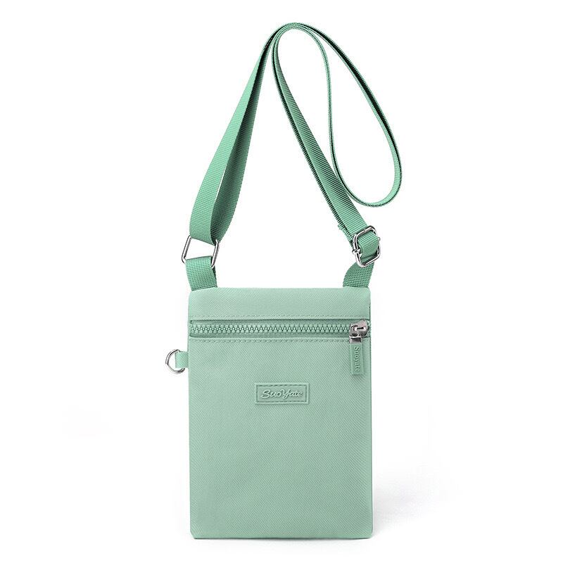 【ユニセックス】斜め掛けできるミニショルダーバッグ。スマホ・財布が入る軽量サコッシュ * カジュアルコーデにぴったり! シンプルデザインの軽量ミニサコッシュ ミントグリーン