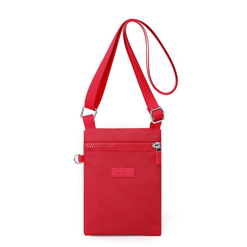 【ユニセックス】斜め掛けできるミニショルダーバッグ。スマホ・財布が入る軽量サコッシュ * カジュアルコーデにぴったり! シンプルデザインの軽量ミニサコッシュ チェリーレッド