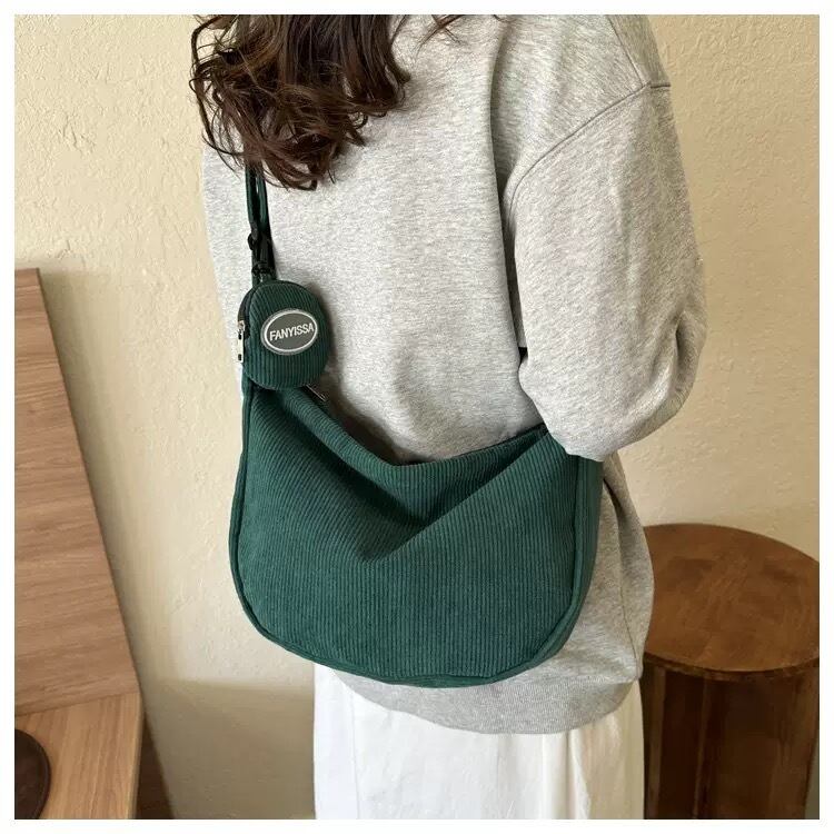 新登場のコーデュロイショルダーバッグは、写真映え抜群のフォレストグリーンが特徴で、さまざまなシーンでおしゃれに存在感を発揮します!旅先や日常使いにぴったりなミニポーチが付属し、大切なアイテムをスマートに持ち運べるデザインとなっています。このバッグで、便利でスタイリッシュな毎日をぜひお楽しみください!