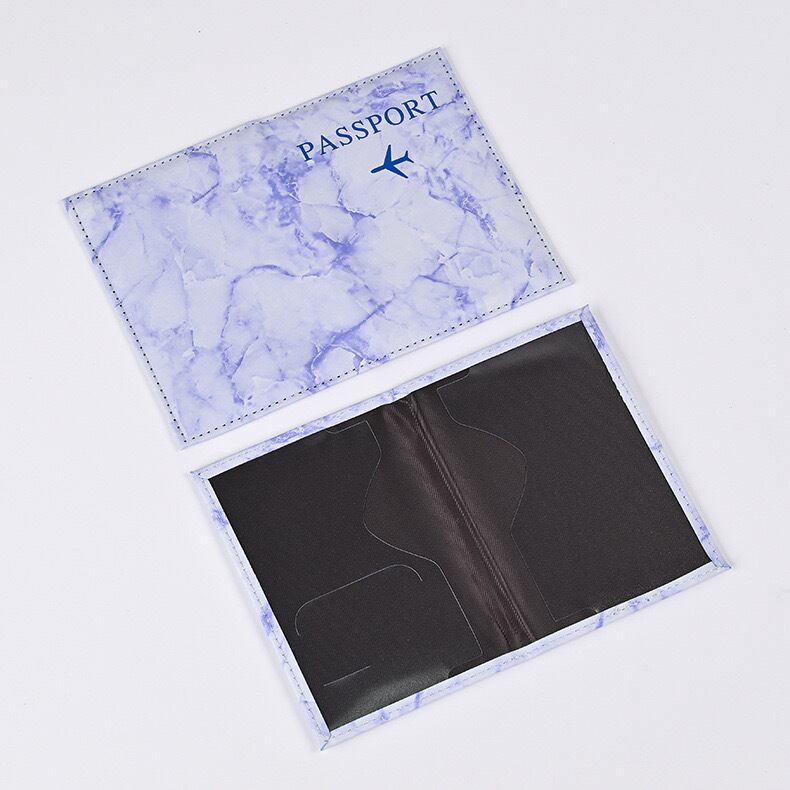 【SNS映え】大理石柄パスポートケース おしゃれな飛行機柄 トラベルグッズ プレゼントにもおすすめ パープル