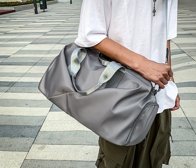 # おしゃれで便利!【軽量】持ち運び楽々ボストンバッグ|ジム・旅行に最適【機内持ち込みOK】 グレー