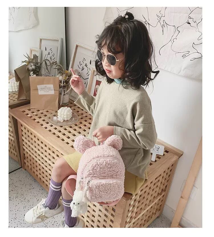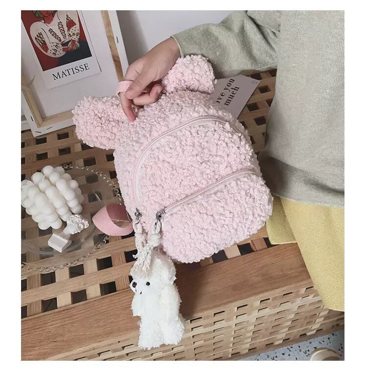 # 【旅行気分アップ!】耳付きボアリュック(ぷっくりラズベリーピンク)キッズ用・おしゃれなお出かけバッグ