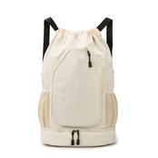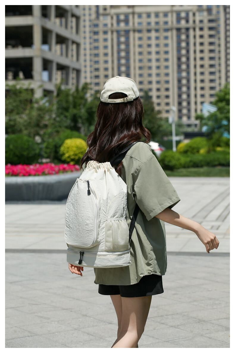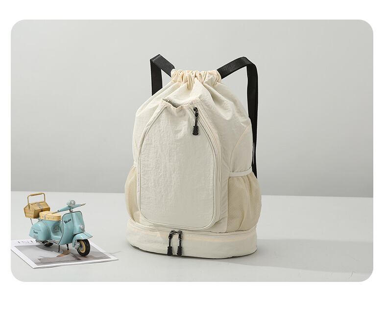 上品な旅の相棒 ソイラテホワイトの多機能バックパック|シューズ収納付き、大容量
