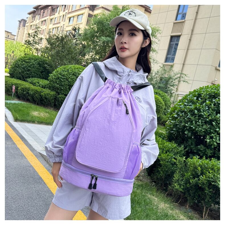 # おしゃれで機能的!【旅行とジムに最適】ウィステリアパープルのシューズ収納付きリュックサックで、あなたのスタイルを応援する一品