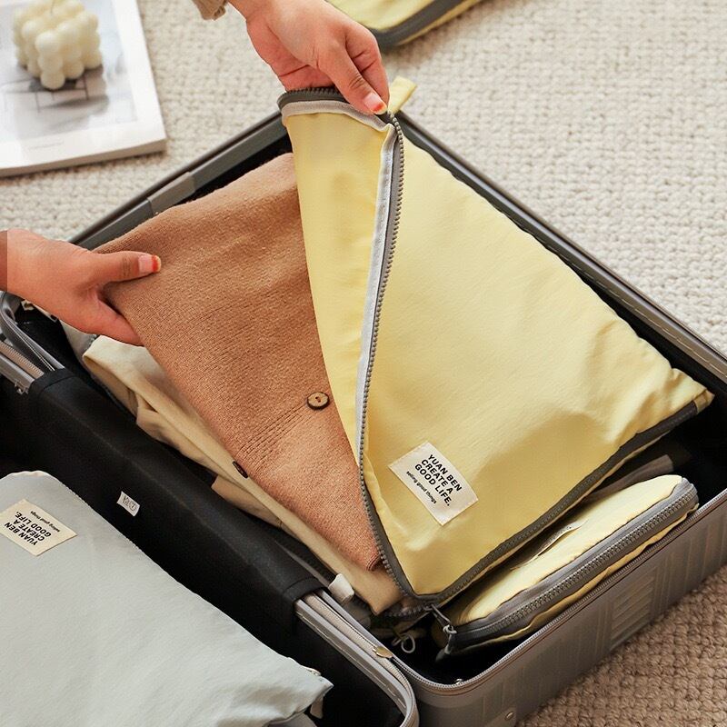旅行用パッキングポーチ | 36×30cm | セーターやパーカーも楽々収納!レモンイエローでスーツケース整理に