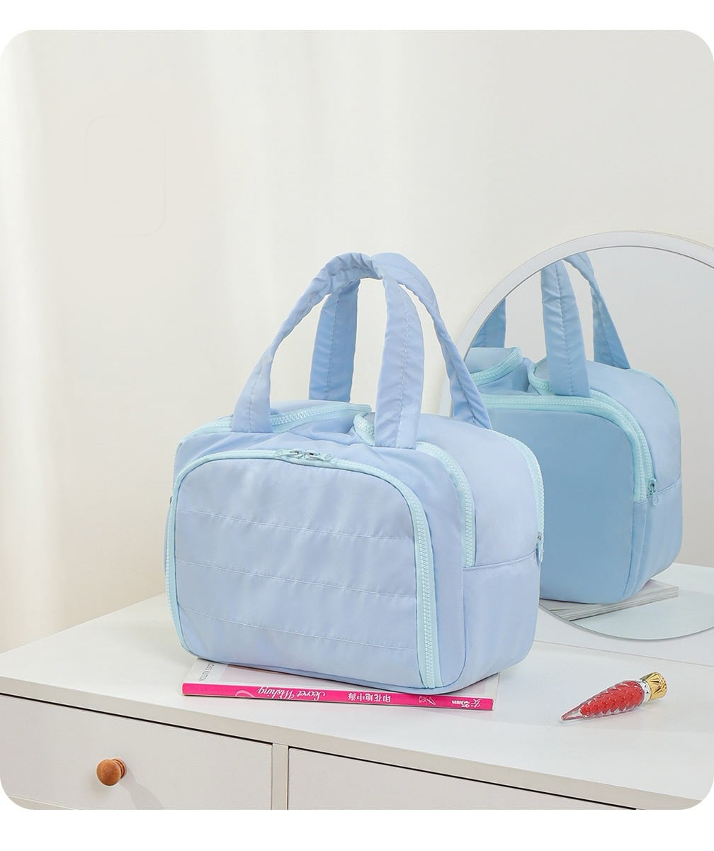 このアクアマリンのメイクポーチは、旅行だけでなく、日常のお出かけやお仕事にも非常に便利です!軽やかで持ち運びやすく、さまざまなシーンで活躍すること間違いなしです。洗練されたデザインのポーチを手に入れて、自信に満ちた毎日を楽しんでください。