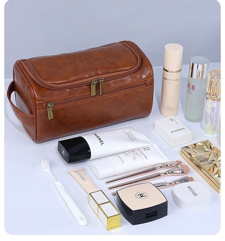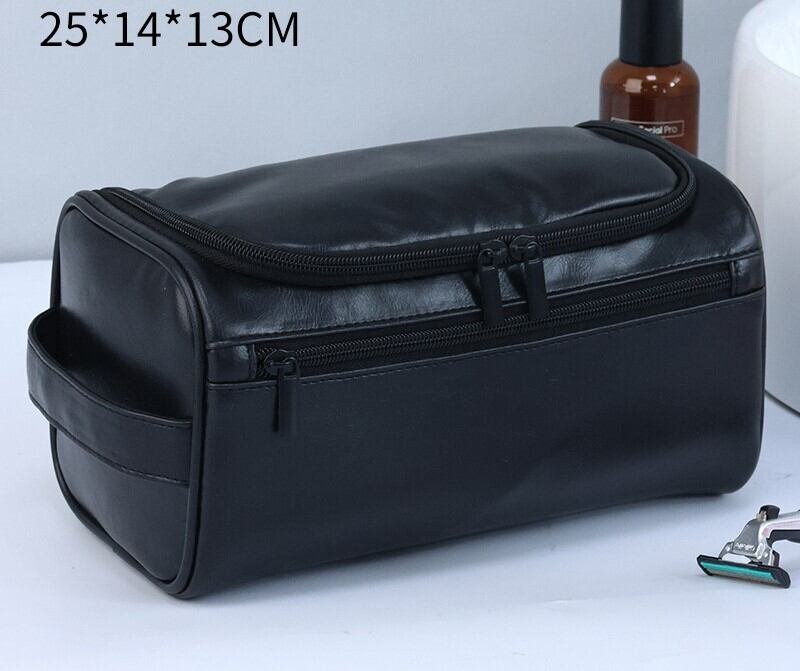 # 【洗練された旅へ】PUレザーの大容量トラベルポーチ - 出張や旅行の荷物をスマートに整理、吊り下げて使えるフック付き ミッドナイトブラック