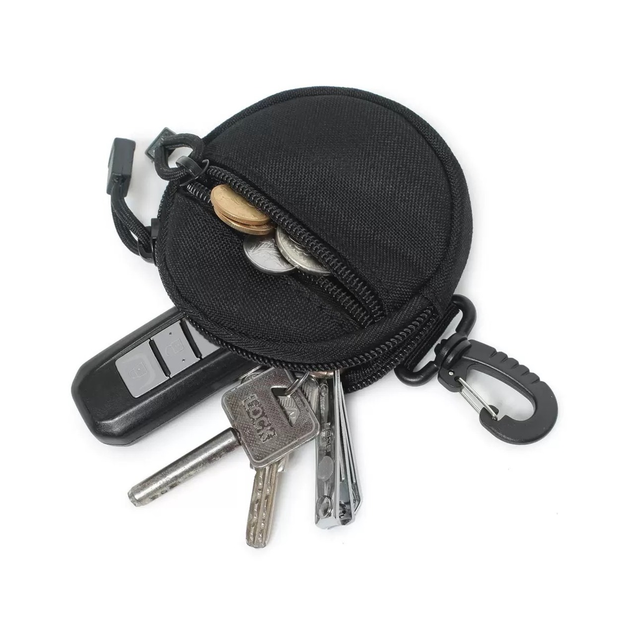 # 【持ち運び便利】カラビナ付き ミニポーチ/小銭入れ カラビナ付きミニ財布/キーケース コンパクト収納 カーキ