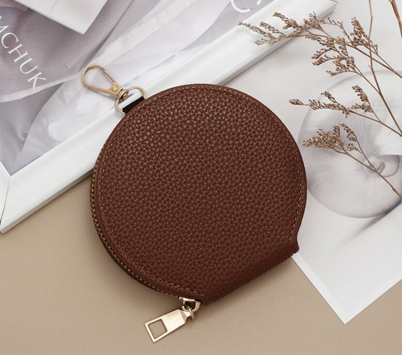 # 【ブラウン】上品な本革風ミニ財布|ブラウン カラビナ付き コンパクトで持ち運び便利!