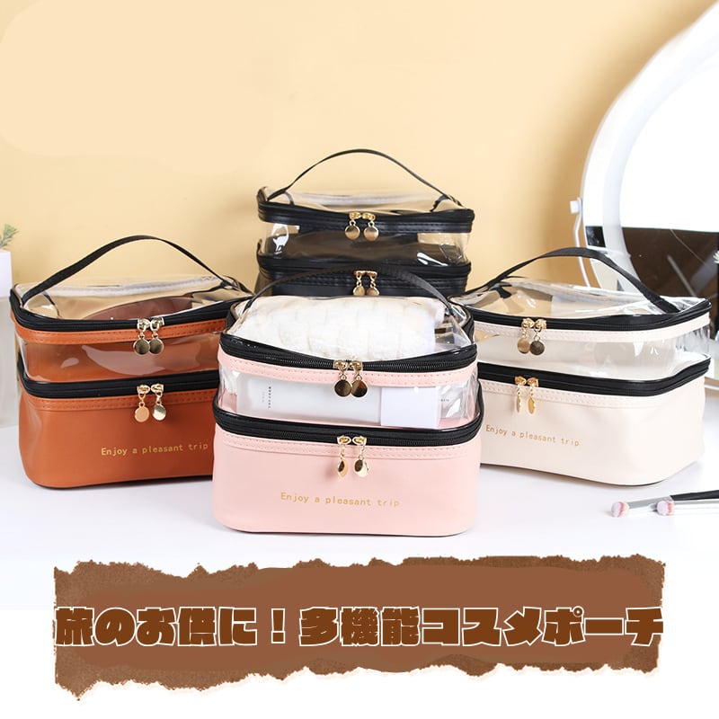 このコスメポーチは、2層式の設計を採用しており、メイクアップアイテムやスキンケア用品を効率的に収納可能です!多彩なポケットと仕切りが豊富にあるため、全てのアイテムが整然と収まり、忙しい朝の準備もスムーズに進むでしょう。旅行や日常生活での使い勝手は抜群です。