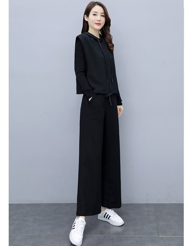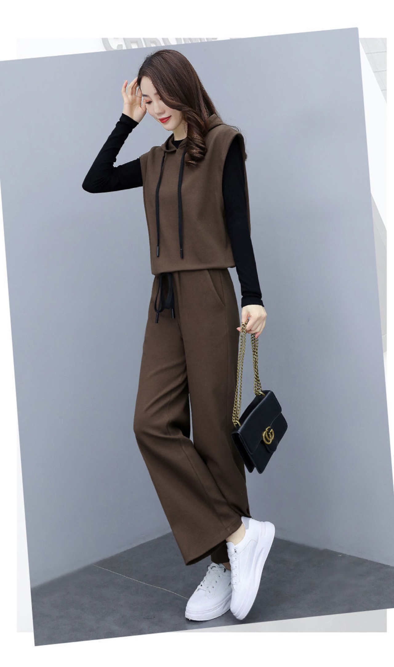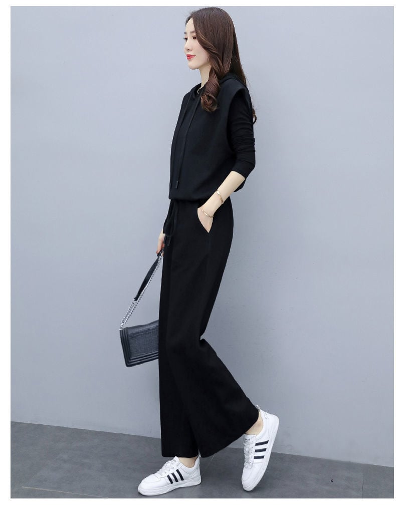 抜群の体型カバー力: トップスのフード付きデザインと、ボトムスの幅広(ワイド)パンツが、気になるヒップや脚のラインを自然にカバーし、リラックスしながらスタイルアップを叶えます。