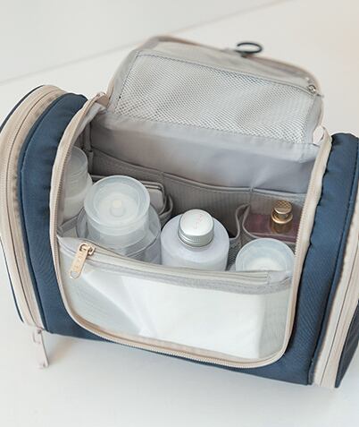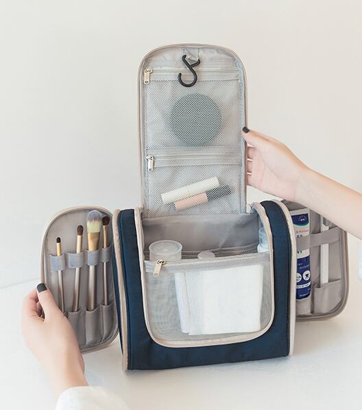 複数のポケットを備えた設計で、ブラシやリップ、ボトルなど、サイズ違いのコスメを定位置に整理できます。必要なものがすぐに取り出せて、朝のメイク時間も短縮!
